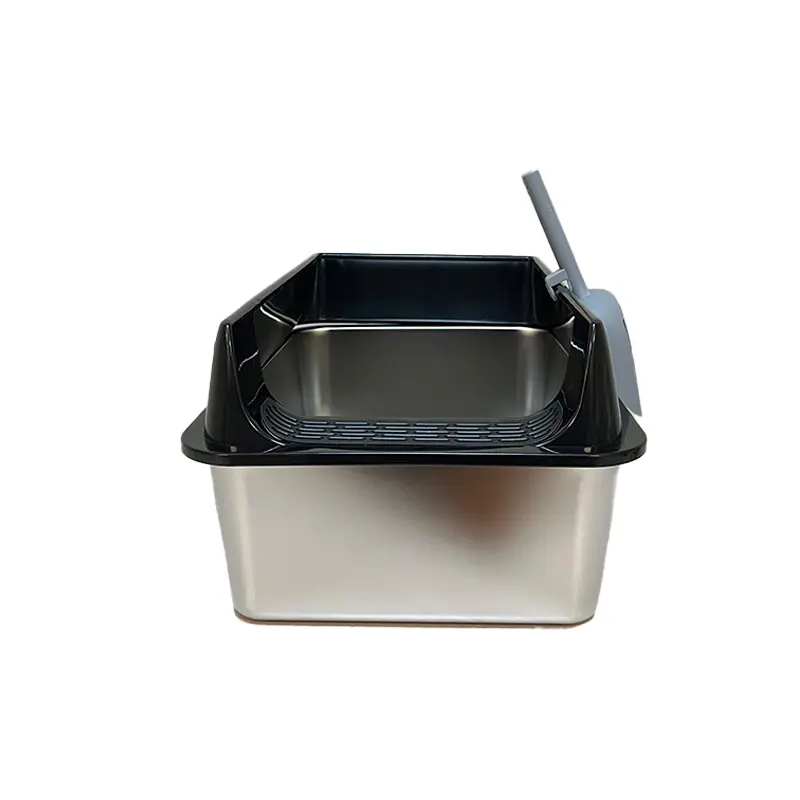 Este innovador baño para gato combina durabilidad, higiene y funcionalidad en un solo producto. Su base está fabricada en acero inoxidable, lo que garantiza una limpieza fácil, resistencia a la corrosión y mayor durabilidad en comparación con los materiales plásticos convencionales. Además, cuenta con un sistema limpia patitas integrado en la entrada, diseñado para atrapar y remover la arena adherida a las patas de tu gato al salir, manteniendo el entorno limpio y libre de arena dispersa.