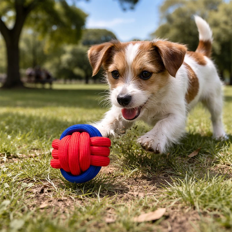 Este divertido juguete de nudos está diseñado para morder y limpiar la dentadura de tu incondicional. Perfecto juguete de cuerda para tirar, lanzar, buscar y masticar. Las bolas de cuerda para masticar pueden ser muy cómodas para la dentición de cachorros y pueden ayudar a mejorar la salud dental de tu perro. Mantén a tu perro entretenido durante horas y evita el comportamiento destructivo de masticación.