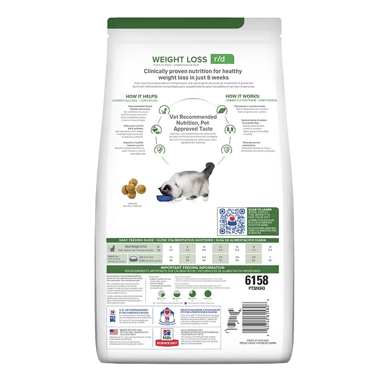 El alimento Hills Prescription Diet r/d es la opción ideal para gatos que necesitan un cuidado especial todos los días. Brinda una nutrición equilibrada y deliciosa, fácil de incorporar en la rutina diaria.