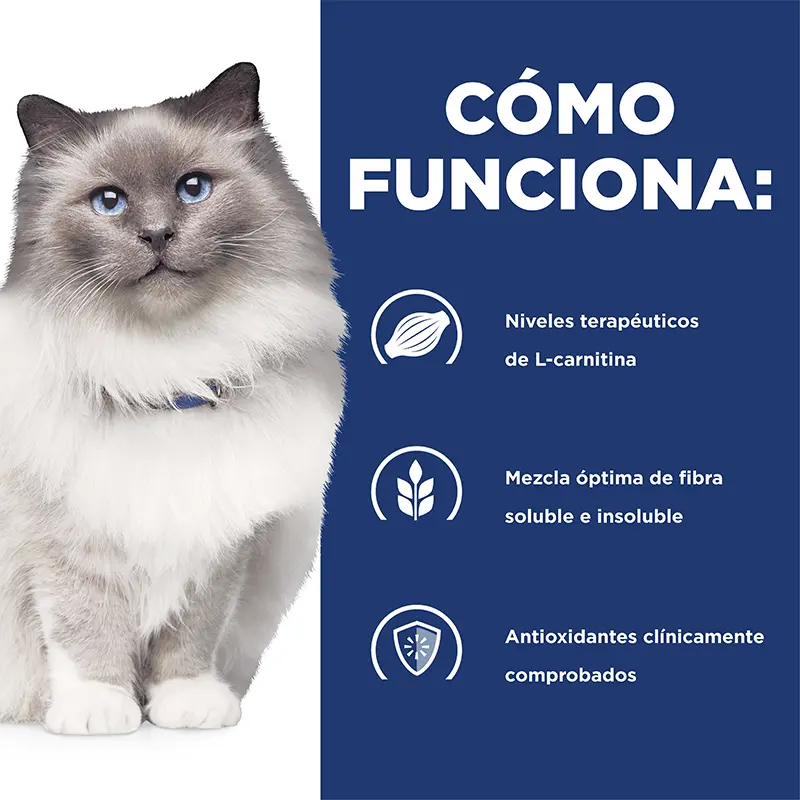 Por eso, los nutricionistas y veterinarios de Hills han desarrollado una fórmula especializada para promover el control de peso y el bienestar integral de tu gato.