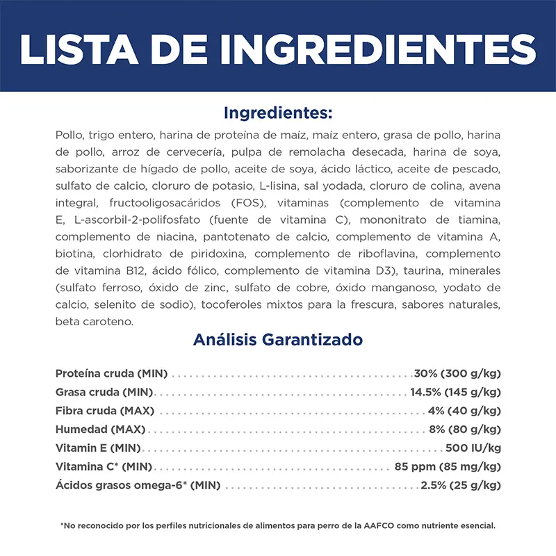 El alimento para gatos adultos Hills Science Diet Adult está diseñado para satisfacer las necesidades de energía de tu gato en la flor de la vida. Este alimento seco está hecho con ingredientes de alta calidad y es fácil de digerir, asegurando que tu felino reciba todos los nutrientes necesarios para mantenerse activo y saludable. Formulado con taurina esencial para la salud del corazón y minerales balanceados para apoyar la función renal y de la vejiga, este alimento también ofrece un delicioso sabor a pollo que a los gatos les encanta, cada porción está enriquecida con vitaminas y minerales para una nutrición completa y equilibrada.