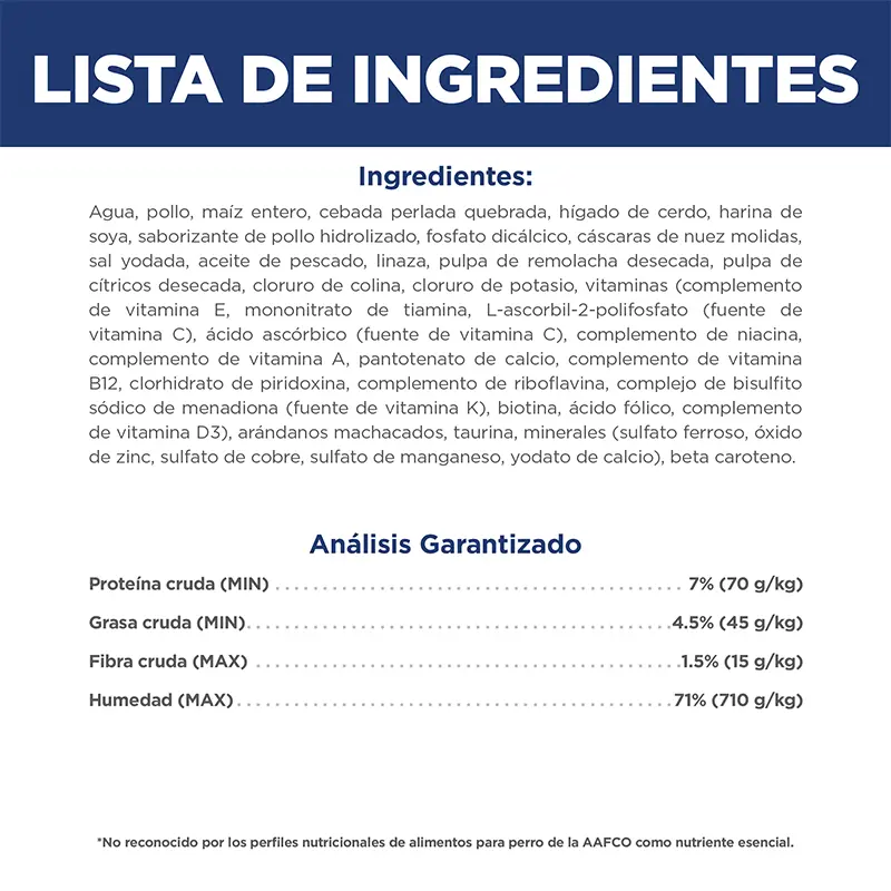 Cada porción está cargada de ingredientes de alta calidad y formulada con precisión para garantizar una alimentación equilibrada. El alimento húmedo para perro cachorro de Hills Science Diet es el alimento que tu cachorro necesita para tener el mejor comienzo en la vida y alcanzar su máximo potencial. Además, Hills Science Diet es la marca #1 recomendada por veterinarios en EEUU.