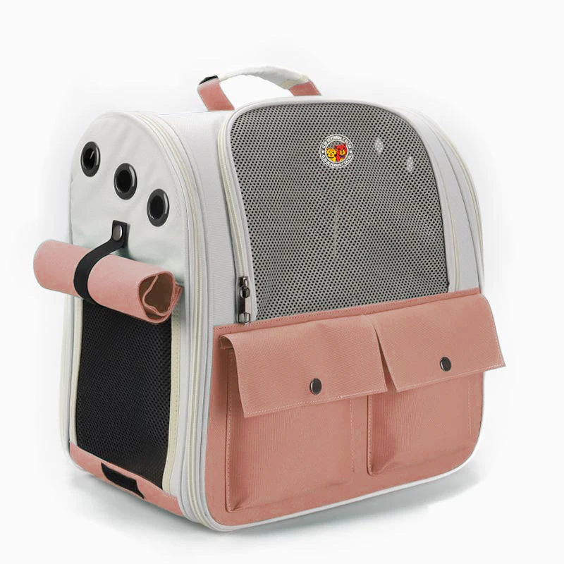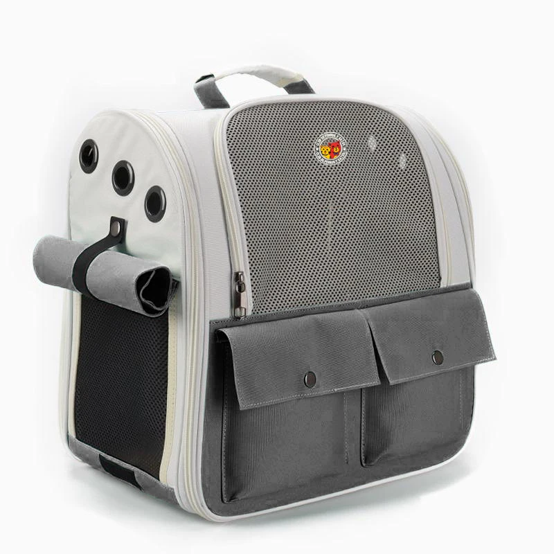 La mochila transportadora beige con turquesa, azul, rosa o grafito. Es el accesorio ideal para llevar a tu perro o gato pequeño de forma segura, cómoda y con estilo. Diseñada con materiales y ventilación óptima, permite que tu mascota viaje tranquila mientras tú disfrutas de un transporte práctico y ergonómico.