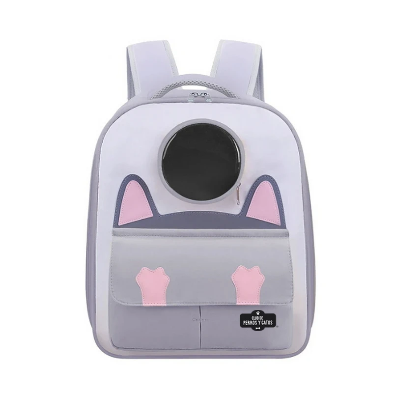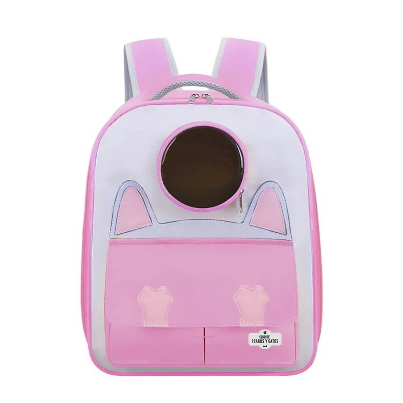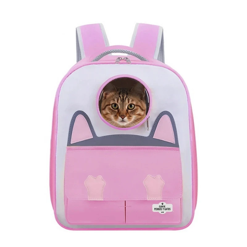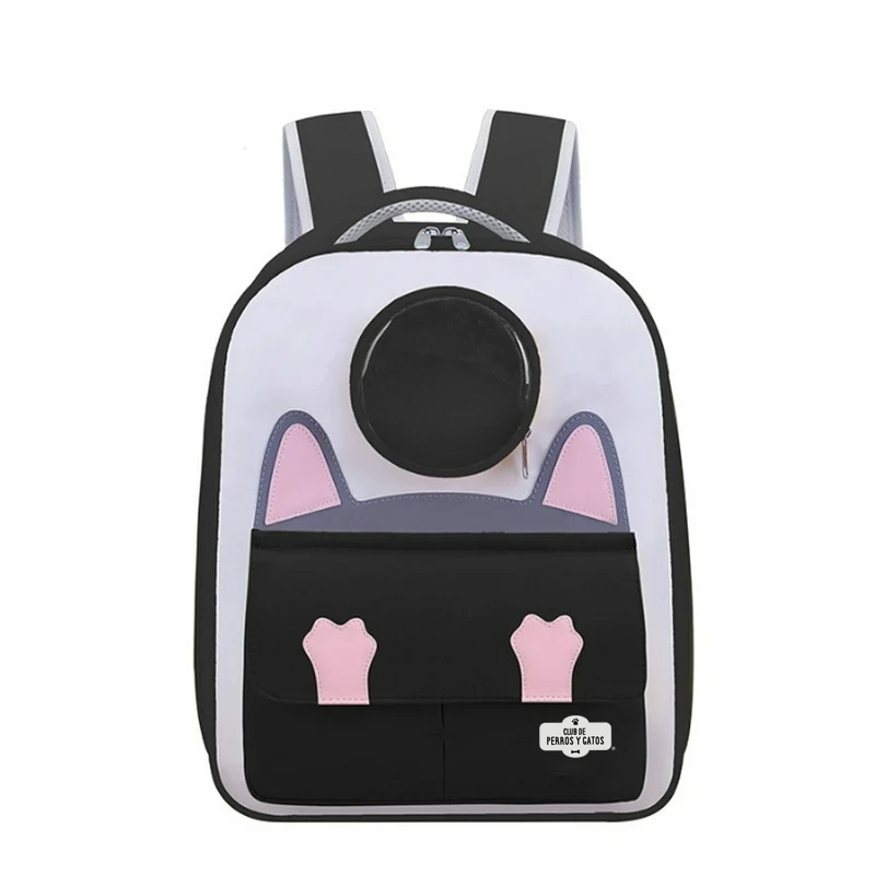 ¡Lleva a tu peludito con estilo! 🐾 Esta mochila transportadora con diseño de gatito kawaii es perfecta para gatos o perritos de hasta 5 kg. Su ventana tipo burbuja transparente,  permite que tu peludito viaje seguro, mientras curiosea el mundo.