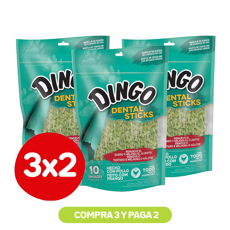 Pack 3×2 Dingo Dental Sticks 10 Unidades