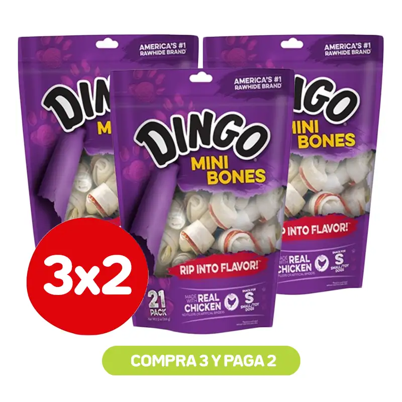 Dingo mini bones un snack irresistible, hecho de carne de pollo, en una presentación miniatura para tu peludito. Un aperitivo delicioso para darle a tu peludo todos los días. Una rica mezcla de carnaza de res y carne de pollo, una buena fuente de proteína además de ayudar a mantener los dientes limpios. Ideal para satisfacer la necesidad de mordisquear.