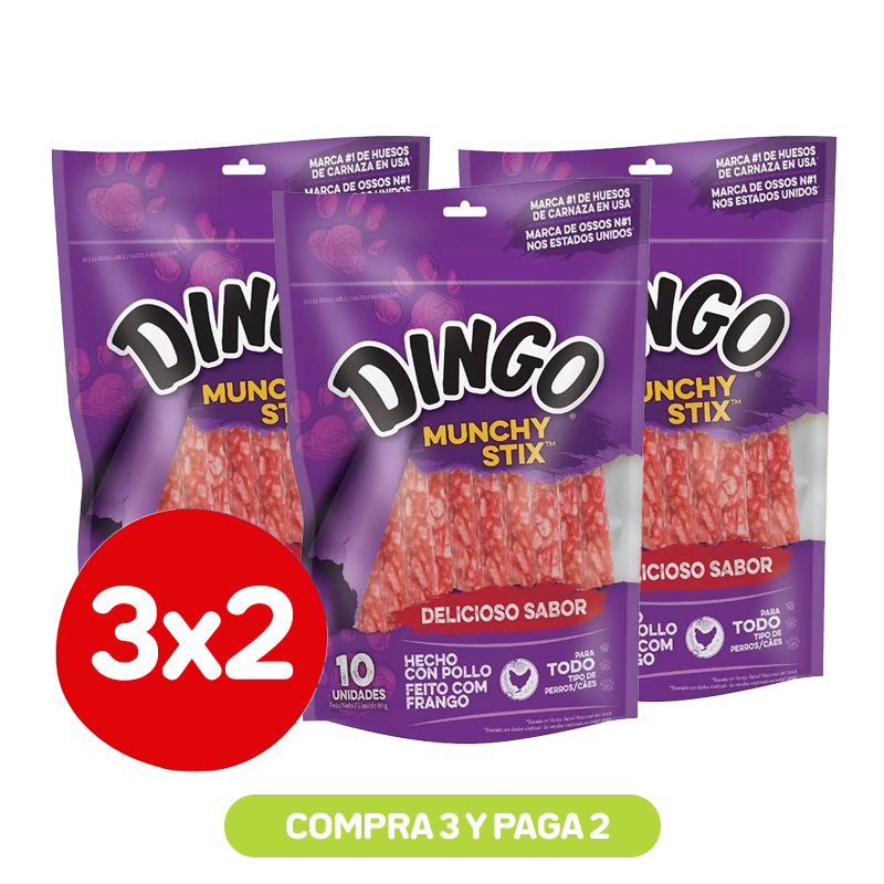 Pack 3×2 Dingo Munchi Sticks 10 Unidades