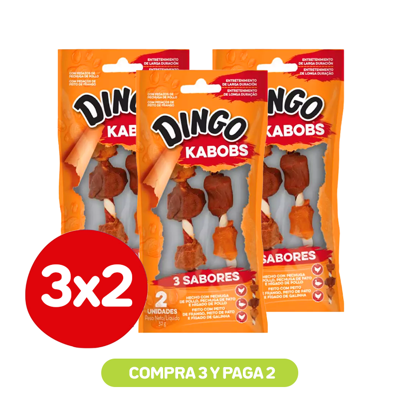 Pack 3×2 Dingo Snack Perro 3 Sabores Kabob 2 unidades