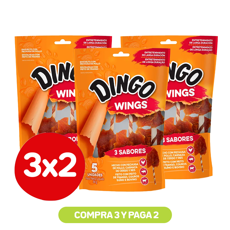 Pack 3×2 Dingo Snack Perro 3 Sabores Wings 5 Unidades