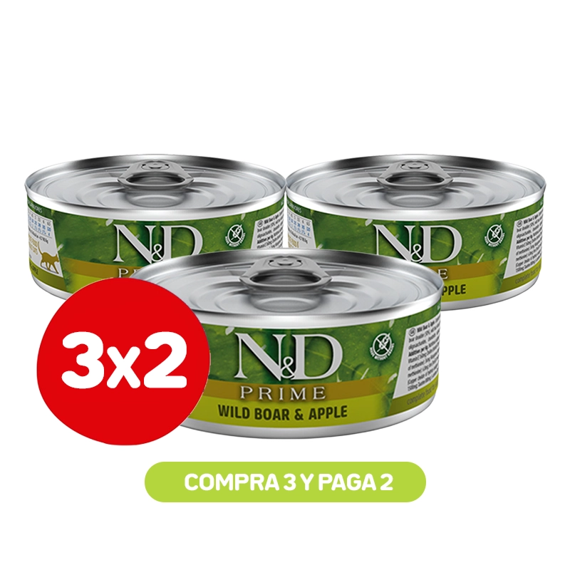 Pack 3×2 N&D Lata Gato Adulto Jabalí Manzana 80 GR