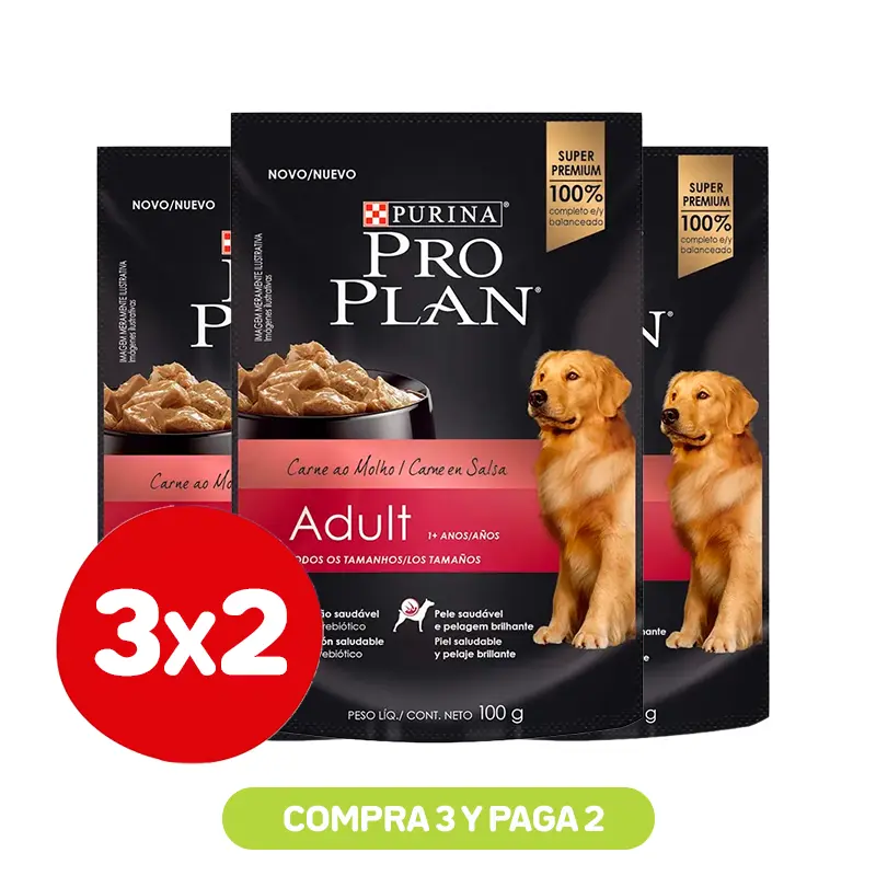 Pack 3X2 Pro Plan Pouch Alimento Húmedo Perro Adulto Carne 100G