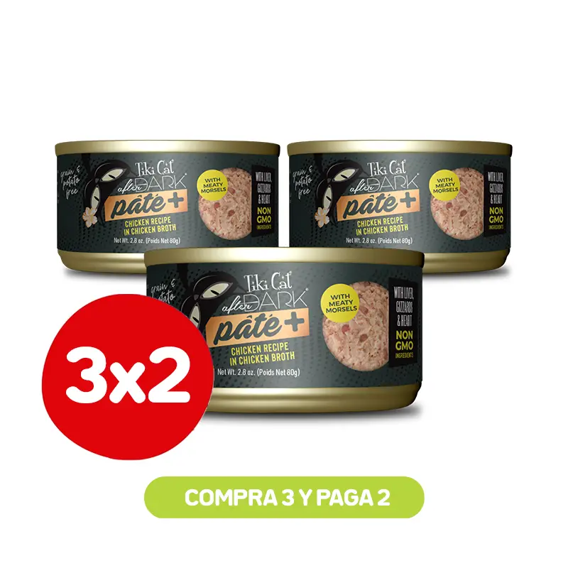Pack 3×2 Tiki Cat After Dark Pate + Chicken Wet Food 80 Gr