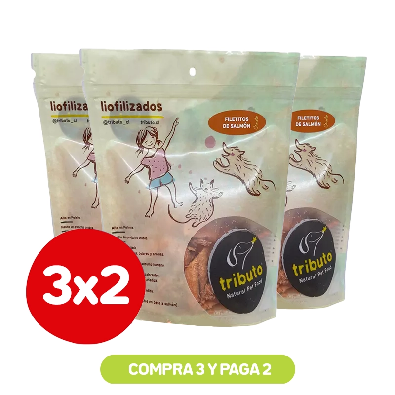 Pack 3×2 Tributo Snack Liofilizado Filete de Salmón 100 Gr