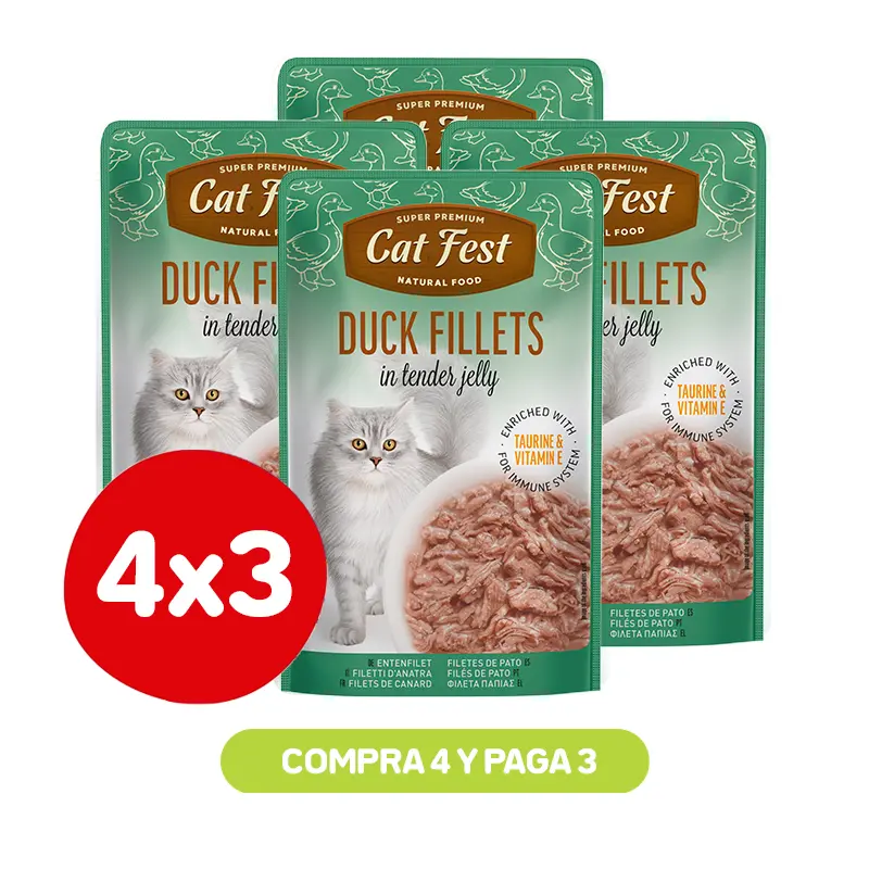 Ofrece a tu gato una experiencia gourmet con Cat Fest Filetes de Pato en Gelatina Suave.
