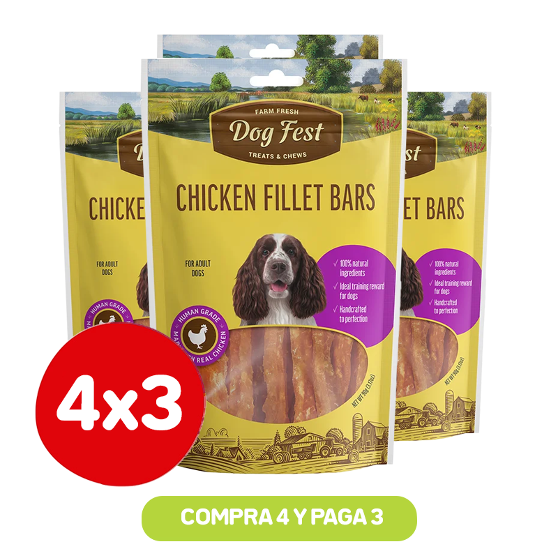 Pack 4x3 Dog Fest Barras de Filete de pollo 90 grs
