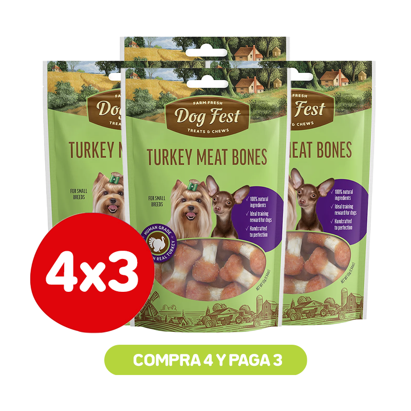 Pack 4×3 Dog Fest Huesitos con Pavo 55 gr