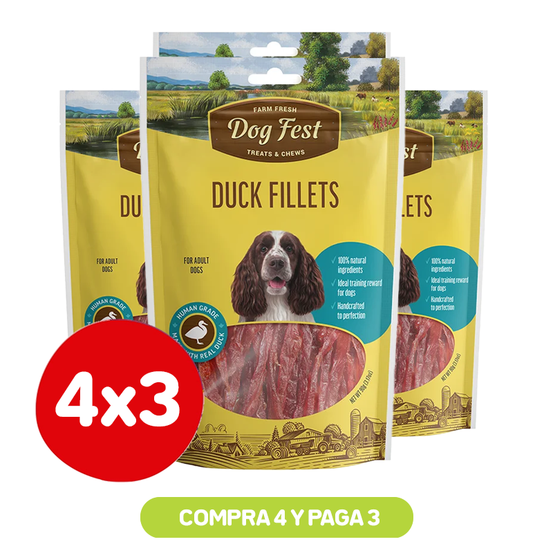Pack 4×3 Dog Fest Snack Filetes de pato 90 grs