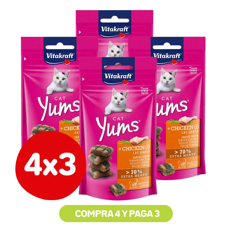Pack 4×3 Vitakraft Cat Yums Chicken & Cat Grass 40 Gr