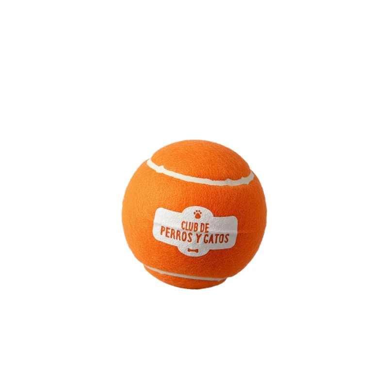 Pelota de tenis clásica con un estampado divertido de club de perros y gatos, disponible en colores amarillo, naranjo y rojo. Mantiene el mismo tamaño, peso y rebote que una pelota de tenis normal, pero con un diseño más llamativo y pensado especialmente para el juego con mascotas.