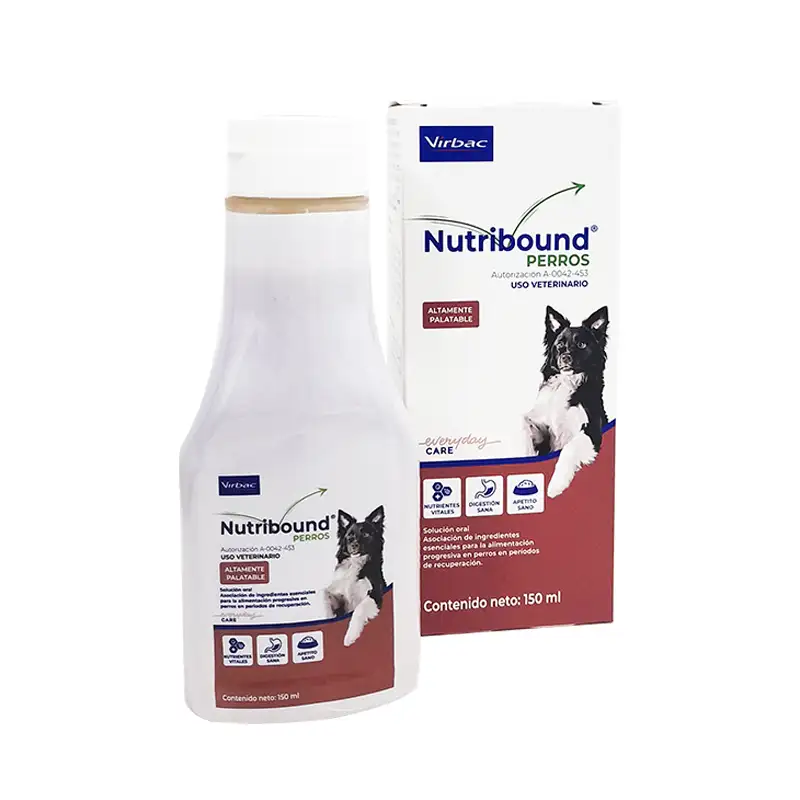 Virbac HPM Nutribound Perros 150 ml es un suplemento alimenticio líquido de alta palatabilidad diseñado para perros de todas las razas y edades que necesitan un apoyo nutricional durante periodos de recuperación. Su fórmula completa y lista para usar promueve el consumo de agua y alimento, ayudando a tu mascota a recuperar fuerza y vitalidad tras enfermedades, cirugías o convalecencias.