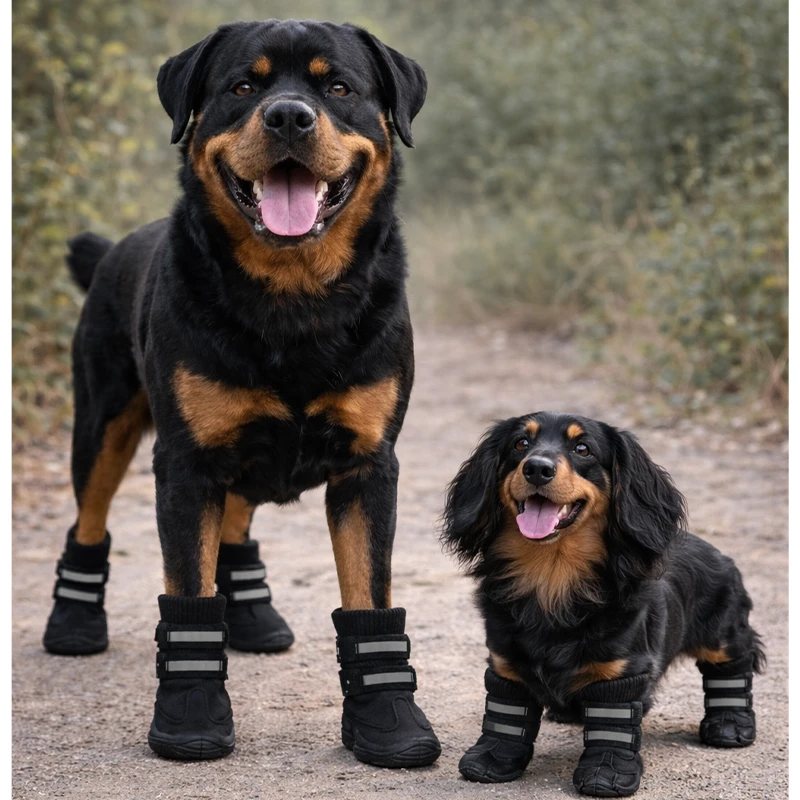 - Confort en condiciones climáticas extremas: Los zapatos protegen las patas del peludo del frío, el calor excesivo o la humedad, proporcionando aislamiento y confort durante paseos en climas extremos.